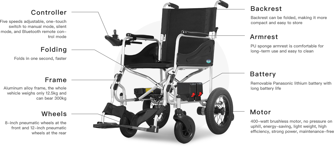 Long battery life, strong power, good on all terrain. Humanized design, easy to fold, easy to carry, worry-free travel. Intelligent control, safe and comfortable, making every trip easy and enjoyable.