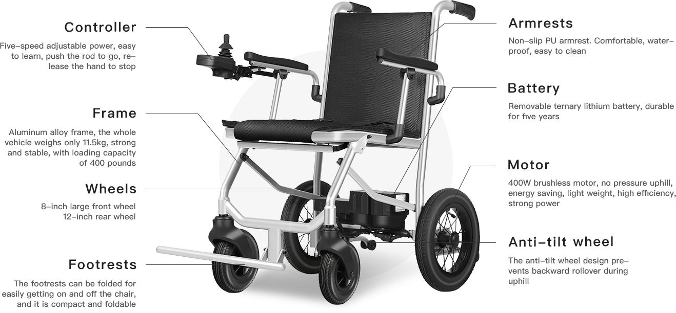 Long battery life, strong power, good on all terrain. Humanized design, easy to fold, easy to carry, worry-free travel. Intelligent control, safe and comfortable, making every trip easy and enjoyable.
