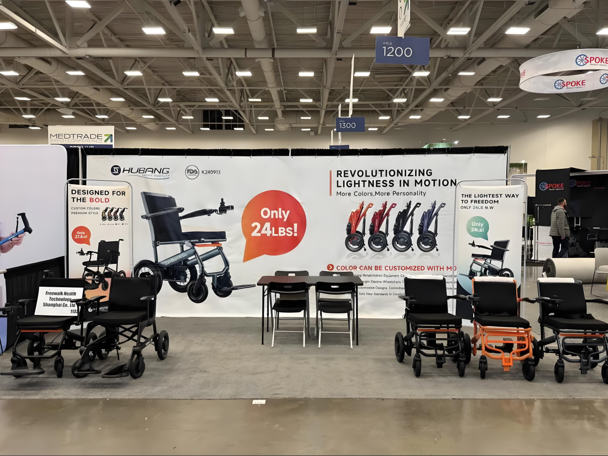 在MEDTRADE的展臺上,互邦展示了多款核心產(chǎn)品,其中碳纖維電動輪椅憑借其創(chuàng)新設(shè)計理念,吸引了眾多國際觀眾的目光。碳纖維電動輪椅采用航空級材料,兼具輕便與耐用特性,支持智能操控與長續(xù)航功能,成為展會上的備受矚目的產(chǎn)品之一。許多國際觀眾在體驗互邦產(chǎn)品后,紛紛表示對其設(shè)計與性能的高度認可。