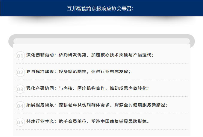 互邦智能將以此次大會為新起點,在協(xié)會新一屆領(lǐng)導(dǎo)班子引領(lǐng)下,切實履行會員責(zé)任,為破解行業(yè)發(fā)展難題、提升中國康復(fù)輔助器具產(chǎn)業(yè)競爭力貢獻力量。